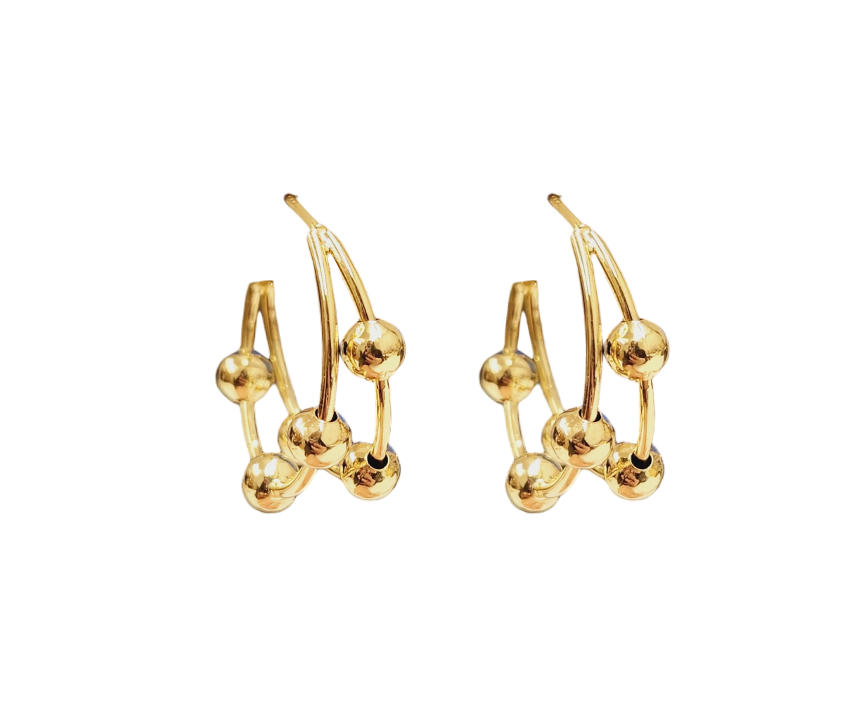 Two Row Gold with 5mm Gold Balls Hoop Pierced Earring