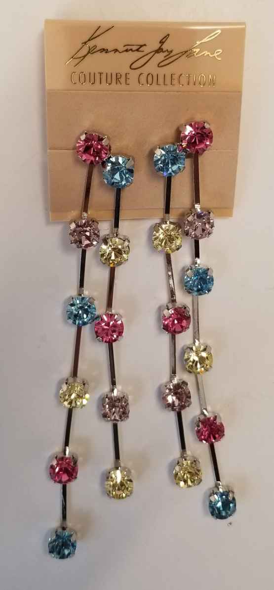 4 3/4" 2 Row Silver Multi-Color Light Pastel Drop Clip Earrings