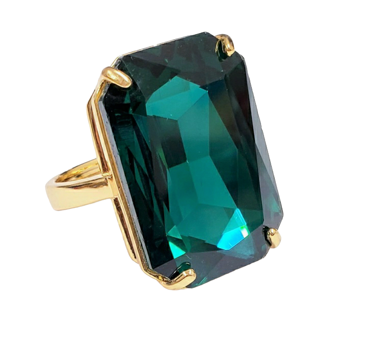 3-4 x 1" Gold with Rectangle Emerald Stone Adjustable Ring