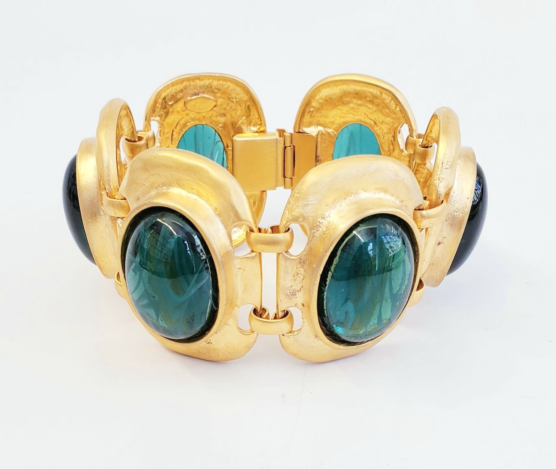 7" Satin Gold with Flawed Emerald Oval Bracelet