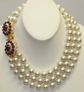 17" Barbara Bush 3 Row Pearl Necklace With Flawed Amethyst Clasp