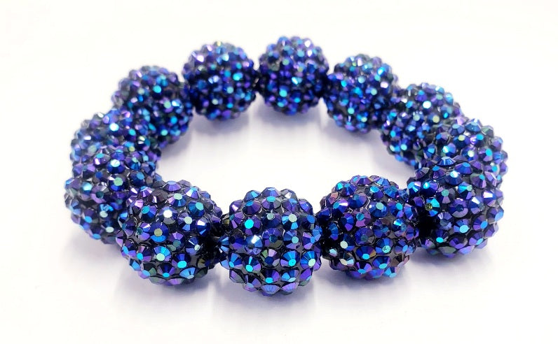 2 1/2" inside diameter blue disco ball stretch bracelet