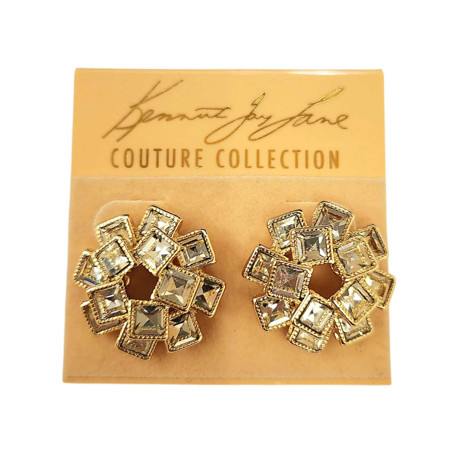 1"X1" gold with square crystal cluster button pierced earring