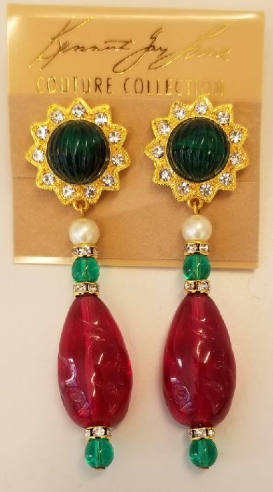 Gold and Crystal Emerald Top Ruby Drop Clip Earring
