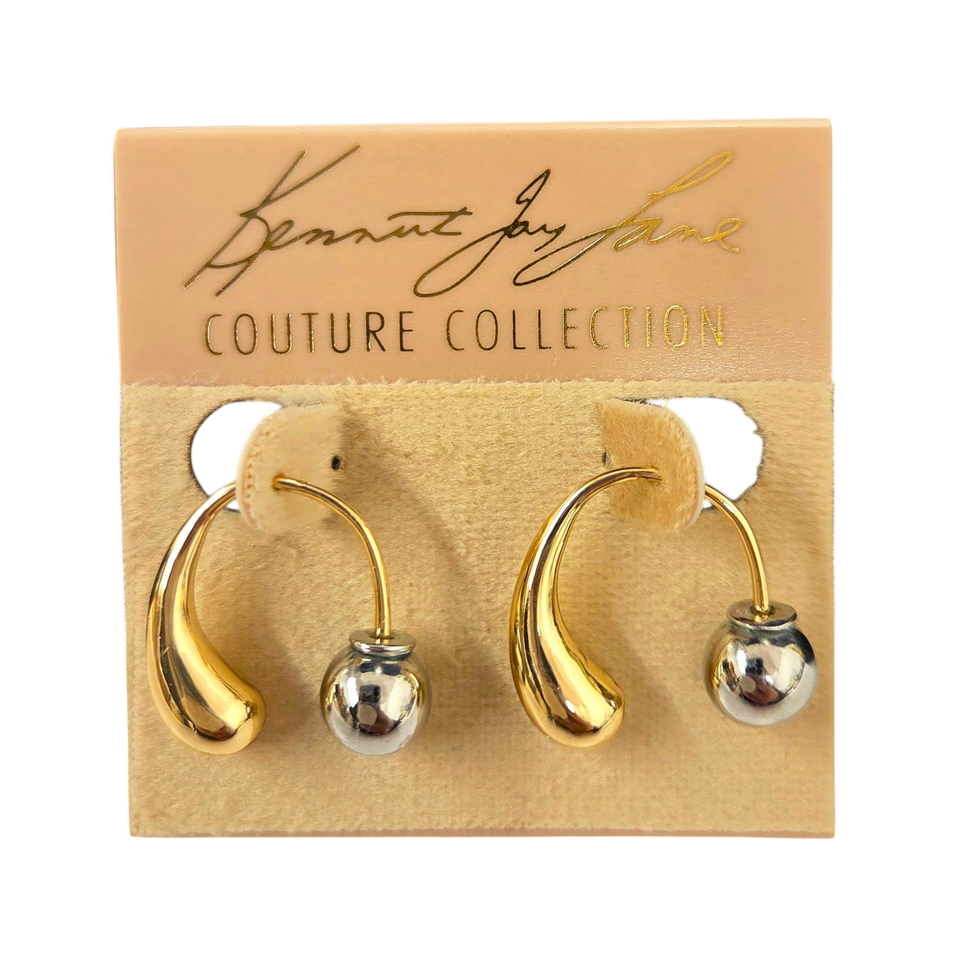 Gold with silver ball U shape ear-jacket pierced earring