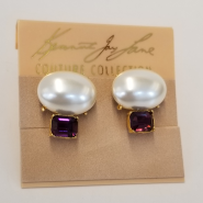 Gold and White Pearl Top Amythest Bottom Clip Earring