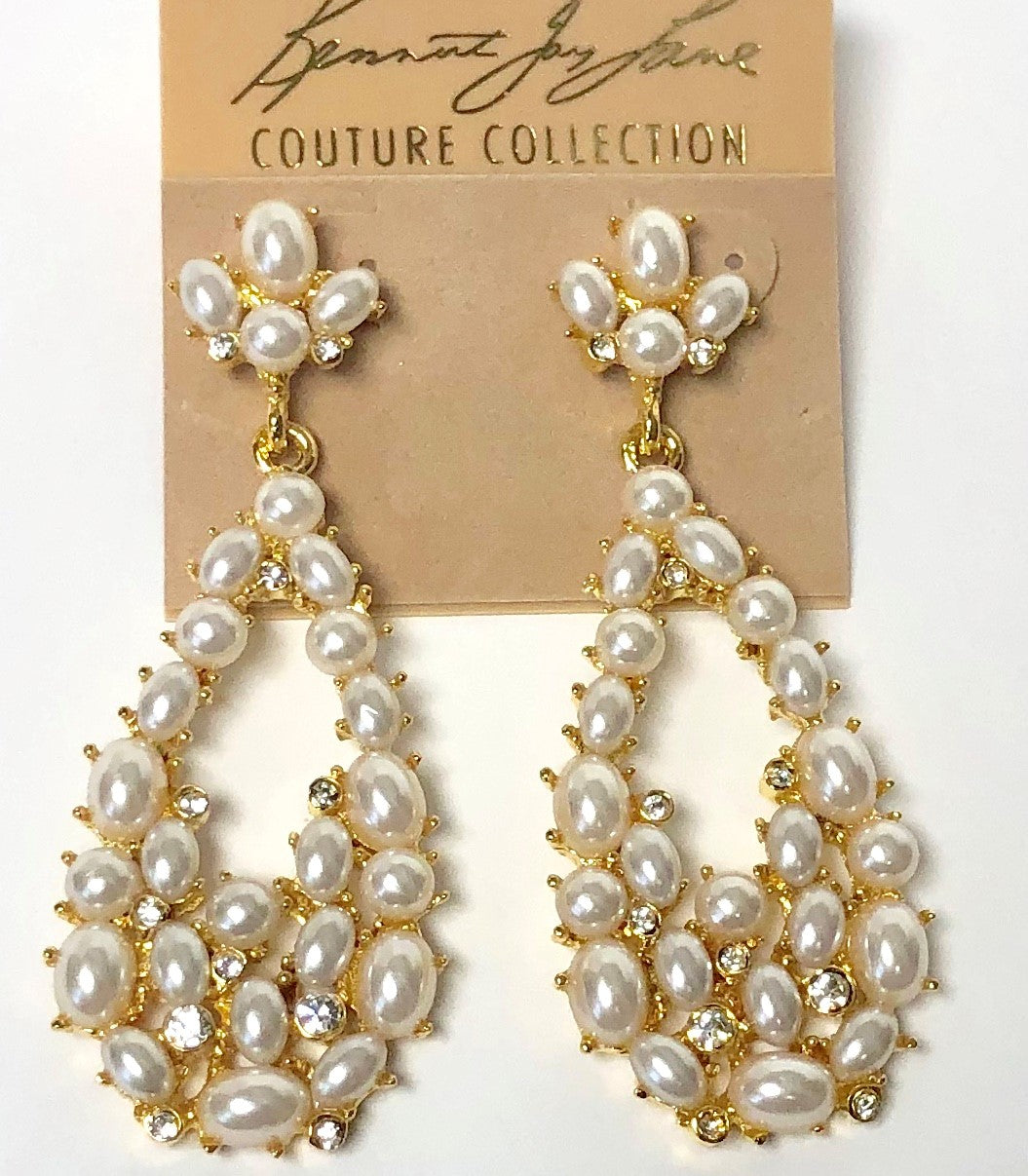 Gold Crystal And Pearl Cabs Teardrop Pierced Earring