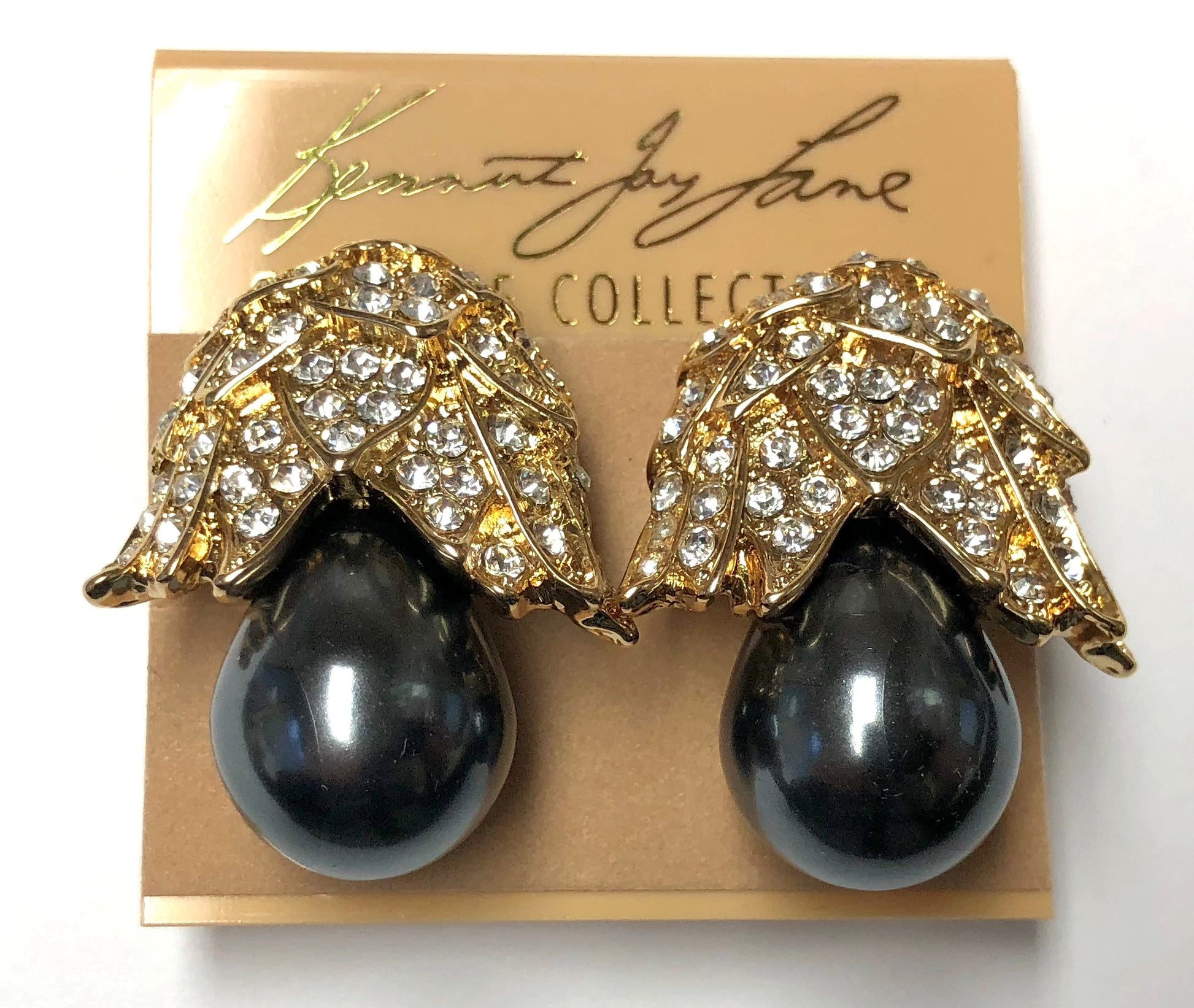 Gold Crystal Top And Gray Pearl Bottom Large Pear Clip Earring