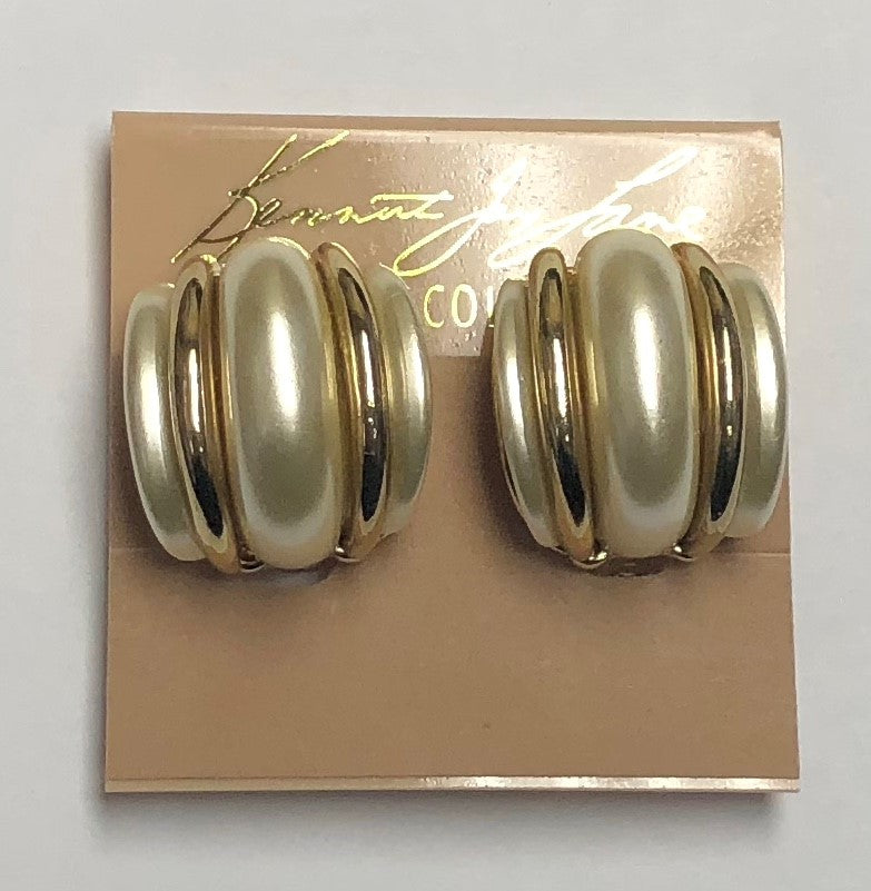 Double Gold White Pearl Domed Clip Earring