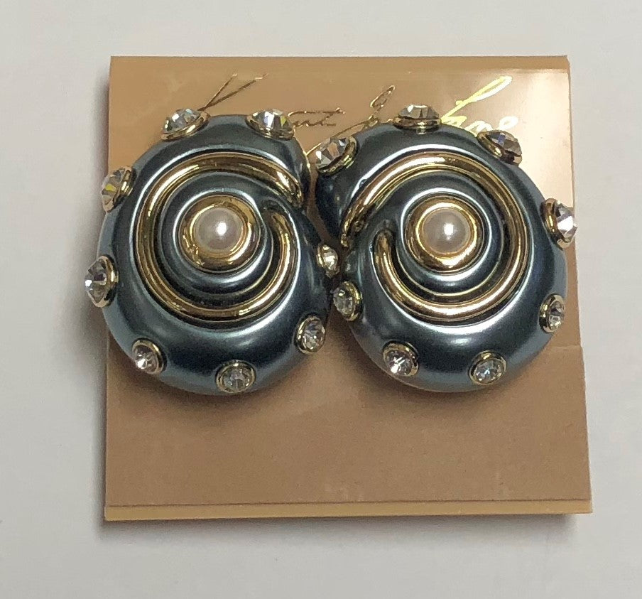 Gold Gray Pearl Crystal Dots-White Pearl Center Snail Clip Earring