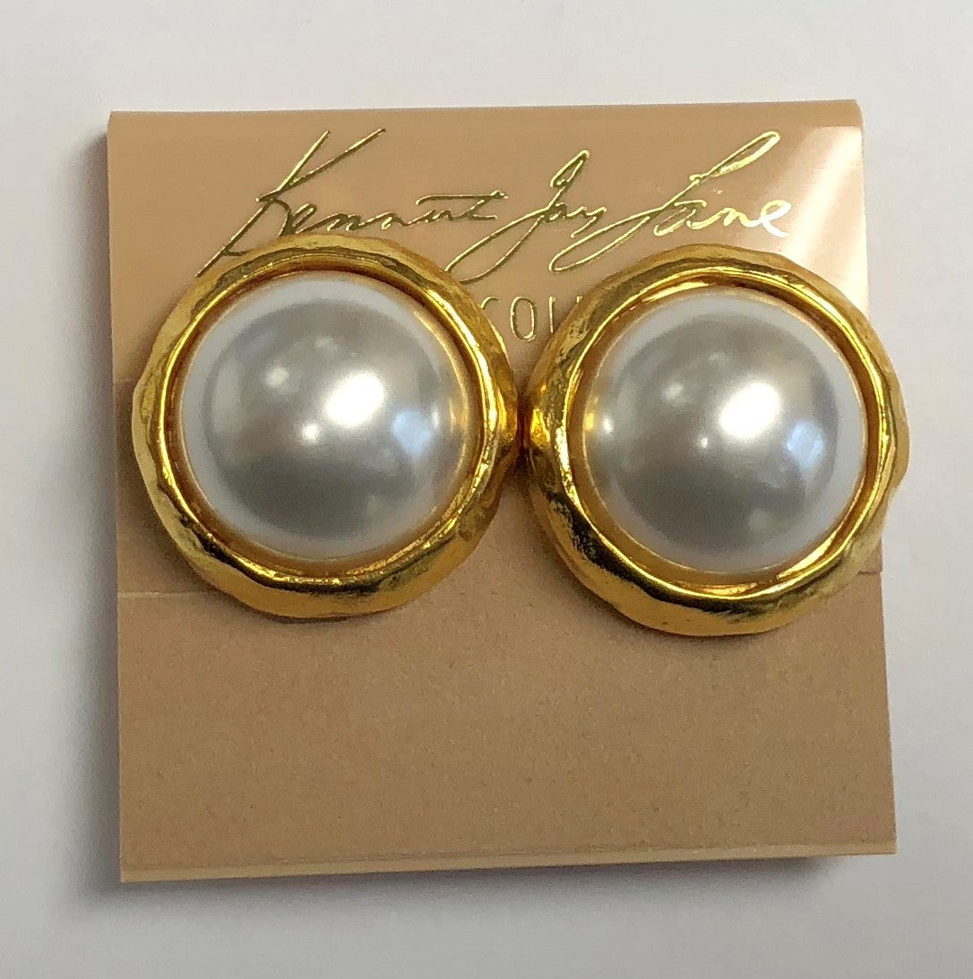 Gold-plated hammered trim with white pearl clip earring