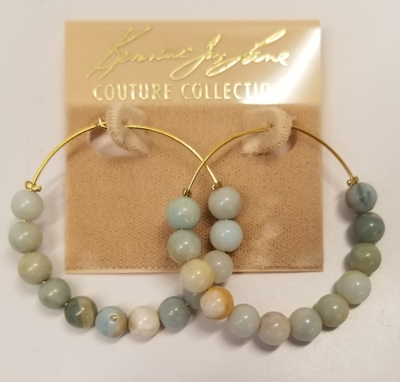 Gold Hoop-Amazonite Bead Pierced Earring