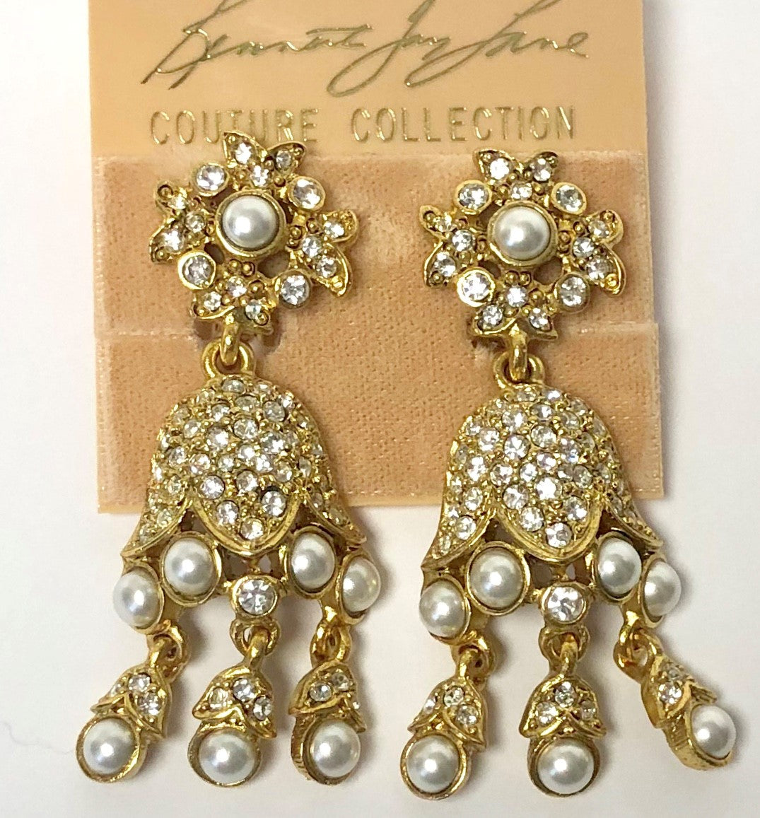 Gold-plated with pearls and crystals 1 tier drop clip earring