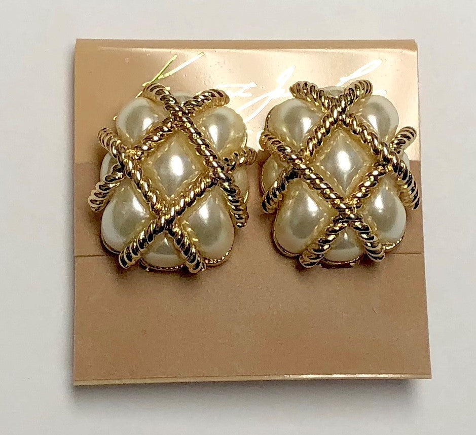 Gold White Pearl Quilted Clip Earring