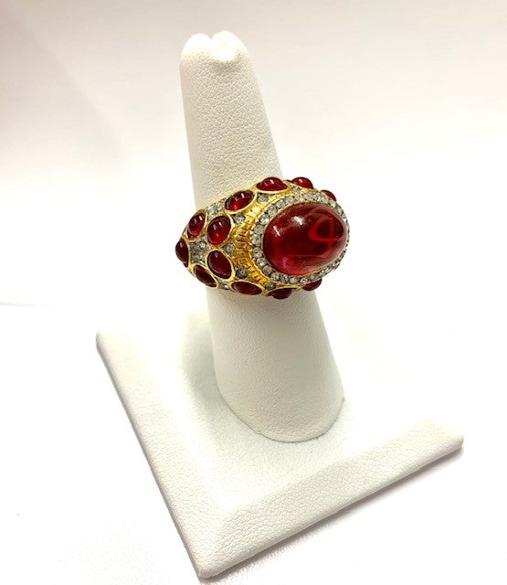 gold/tt rhinestone adjustable ring w/ flaw ruby cabochons