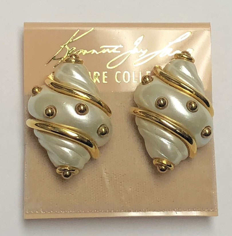 Gold White Pearl Gold Dots Small Shell Clip Earring