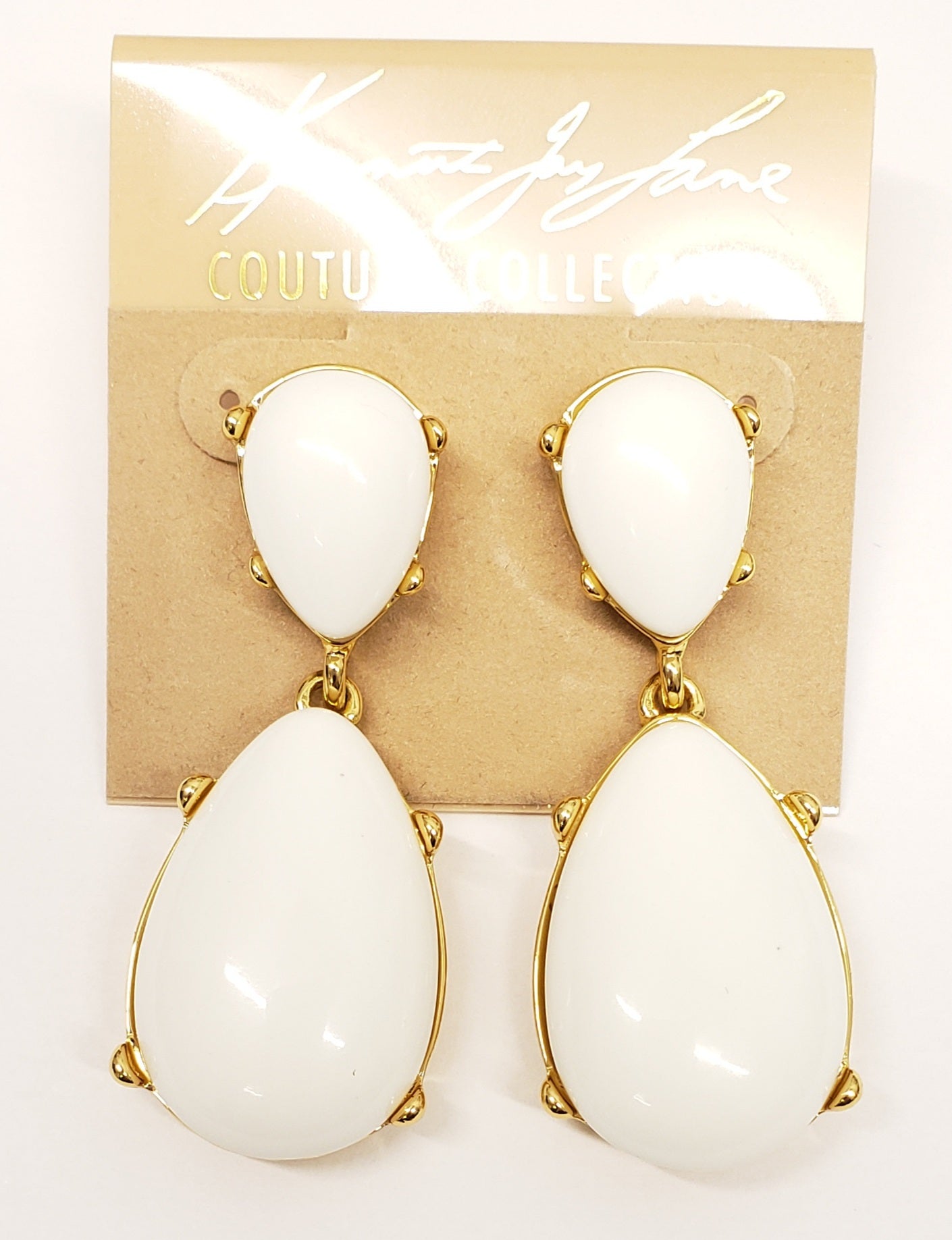2" gold/white resin teardrop cabochon top & drop pierced earring