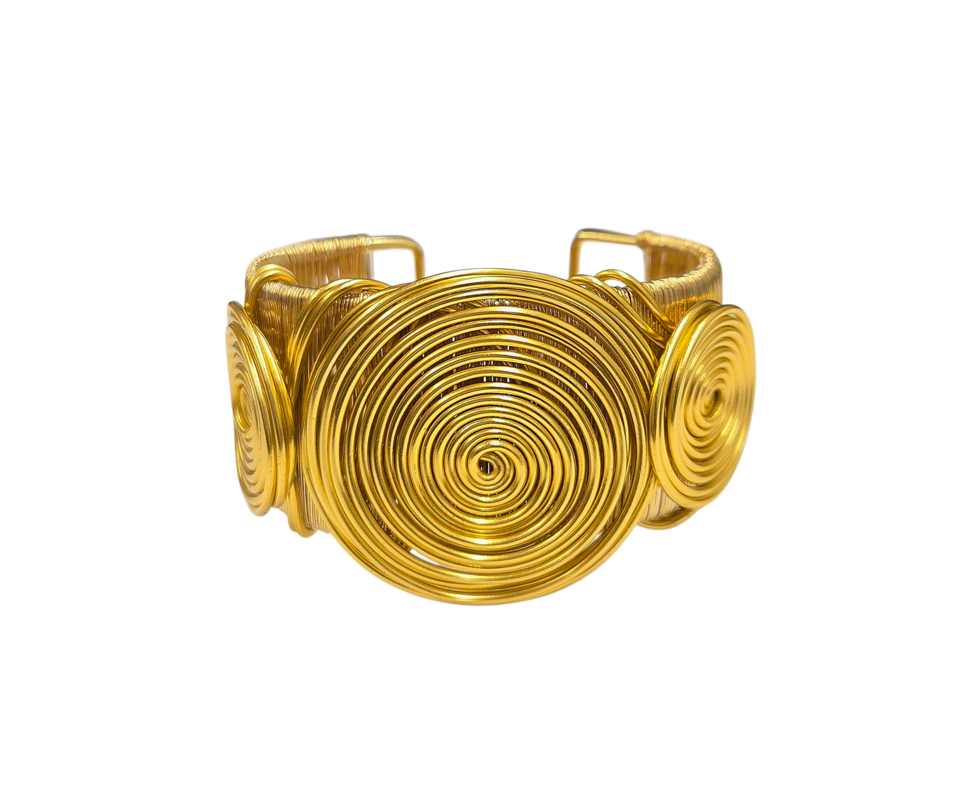 2 1/2" inside diameter gold wire wrap w/3 gold swirl open cuff