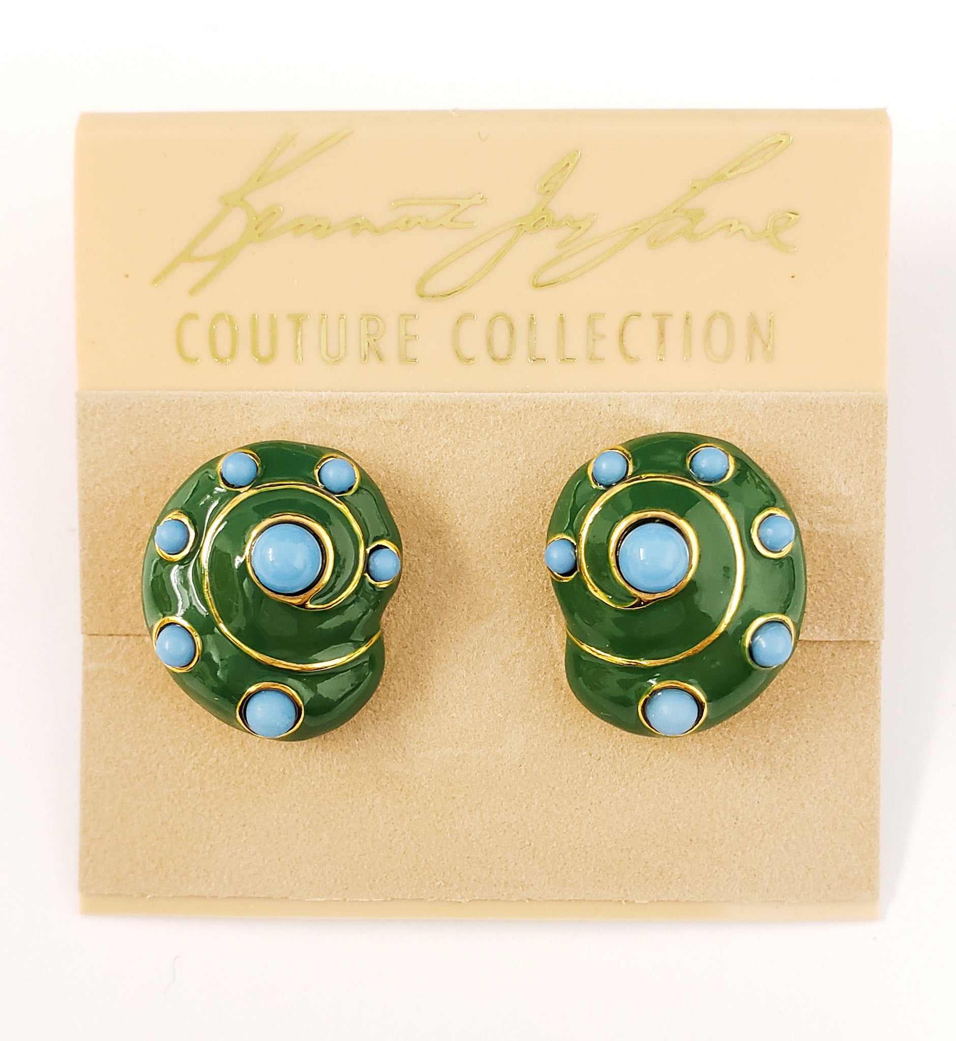 gold with jade enamel/turquoise dots snail clip earring