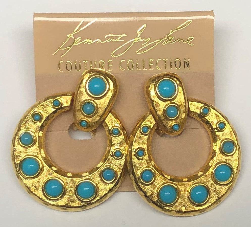 Gold With Turquoise Cabochons Doorknocker Clip Earring
