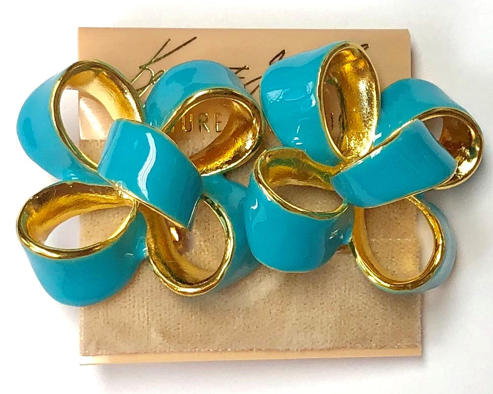 Gold-plated with turquoise enamel large bow clip earring