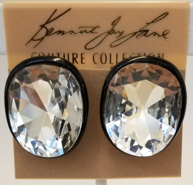 Jackie Onassis Black Crystal Headlight Clip Earring