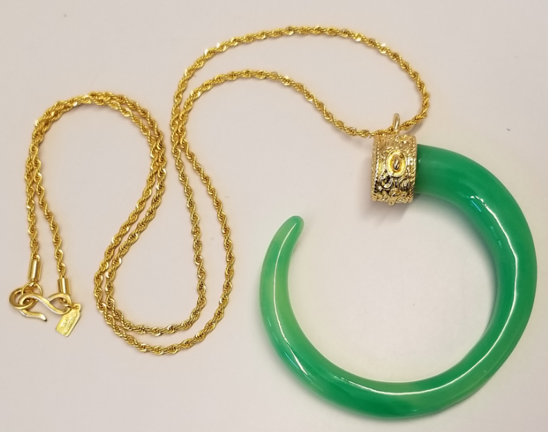 34" Jade C Pendant on Gold Chain