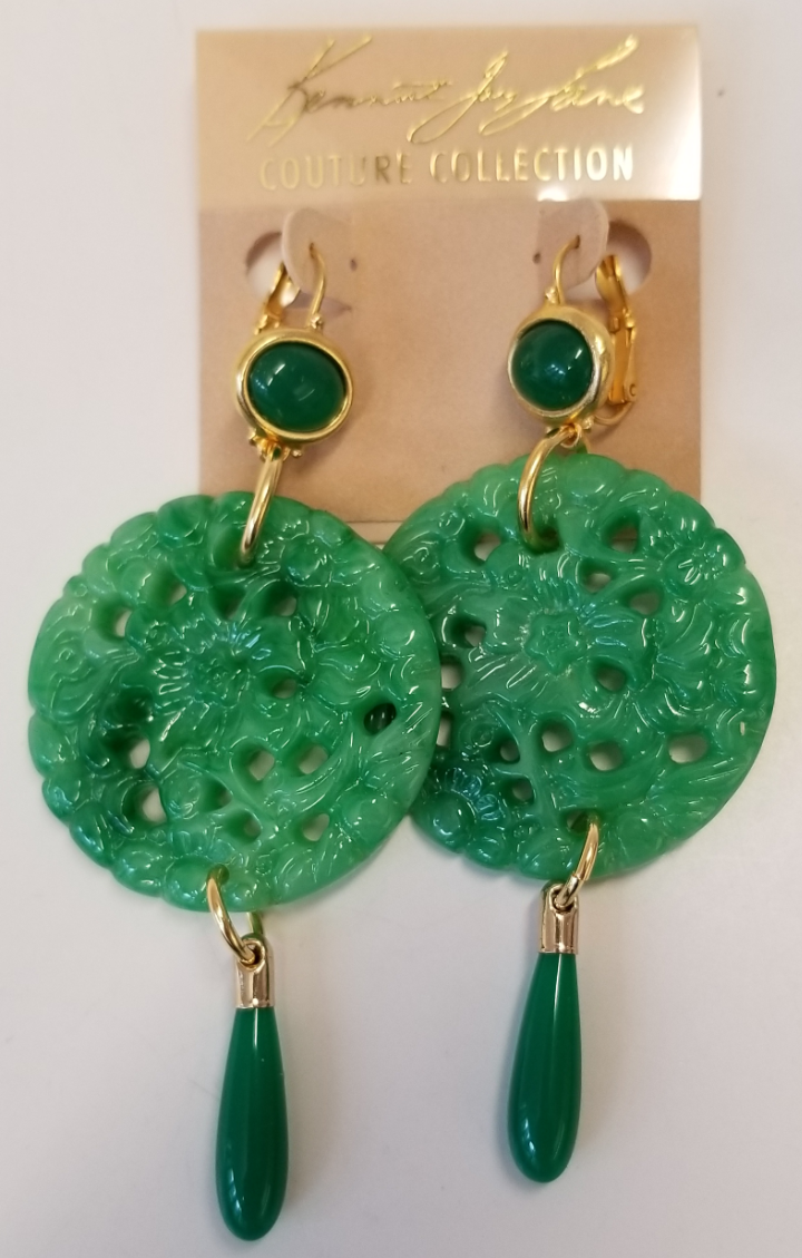 Jade Top-Large Carved Jade-Jade Drop Wire Earring