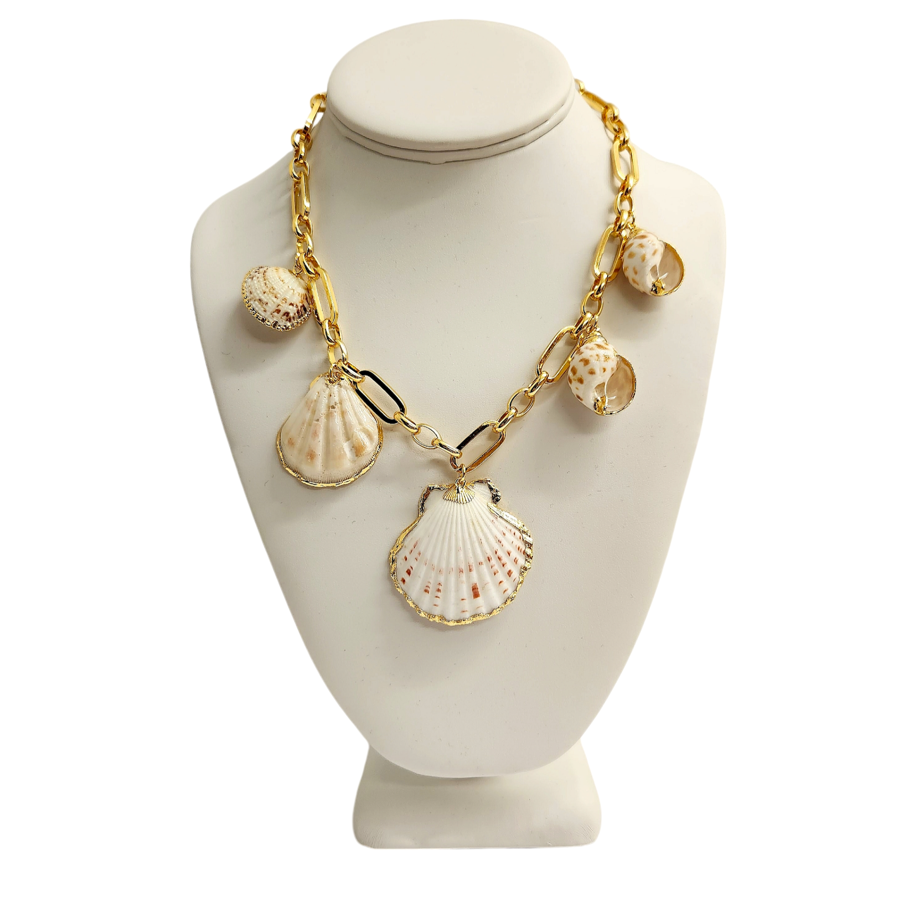 16" gold chain with 5 multi shell charm lobster claw necklace