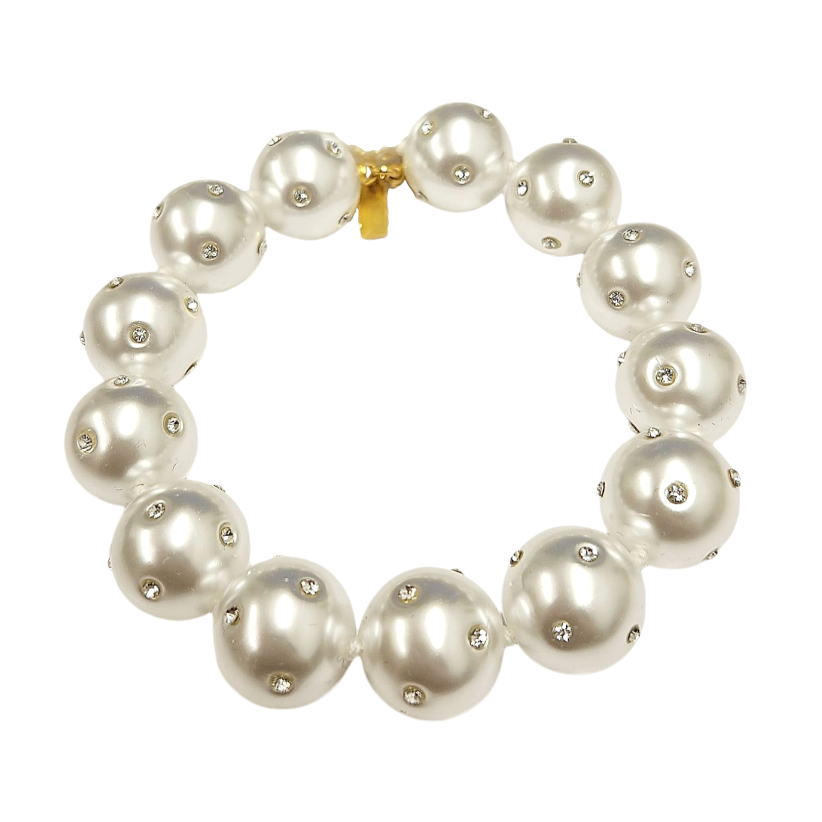 6" stretch slip-on bracelet with 16 millimeter pearl and crystal dot balls