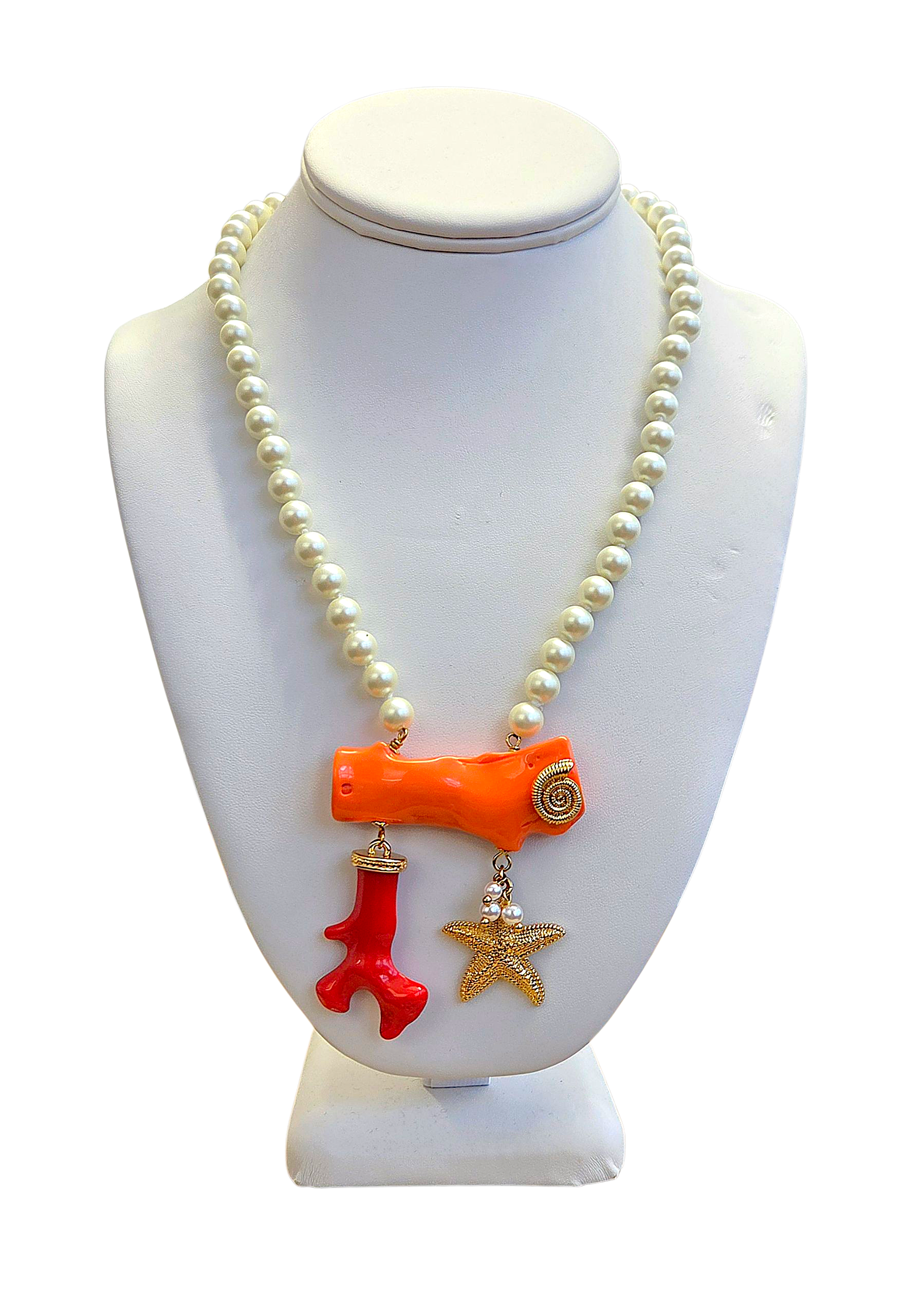 Pearl with Light Coral & Medium Coral Pendant Necklace
