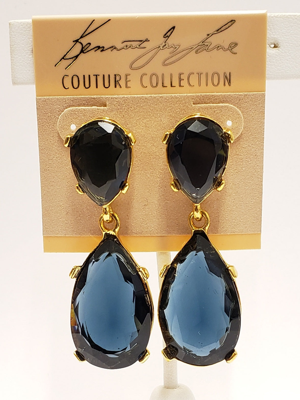 Polished Gold- Sapphire Teardrop Pierced Earring