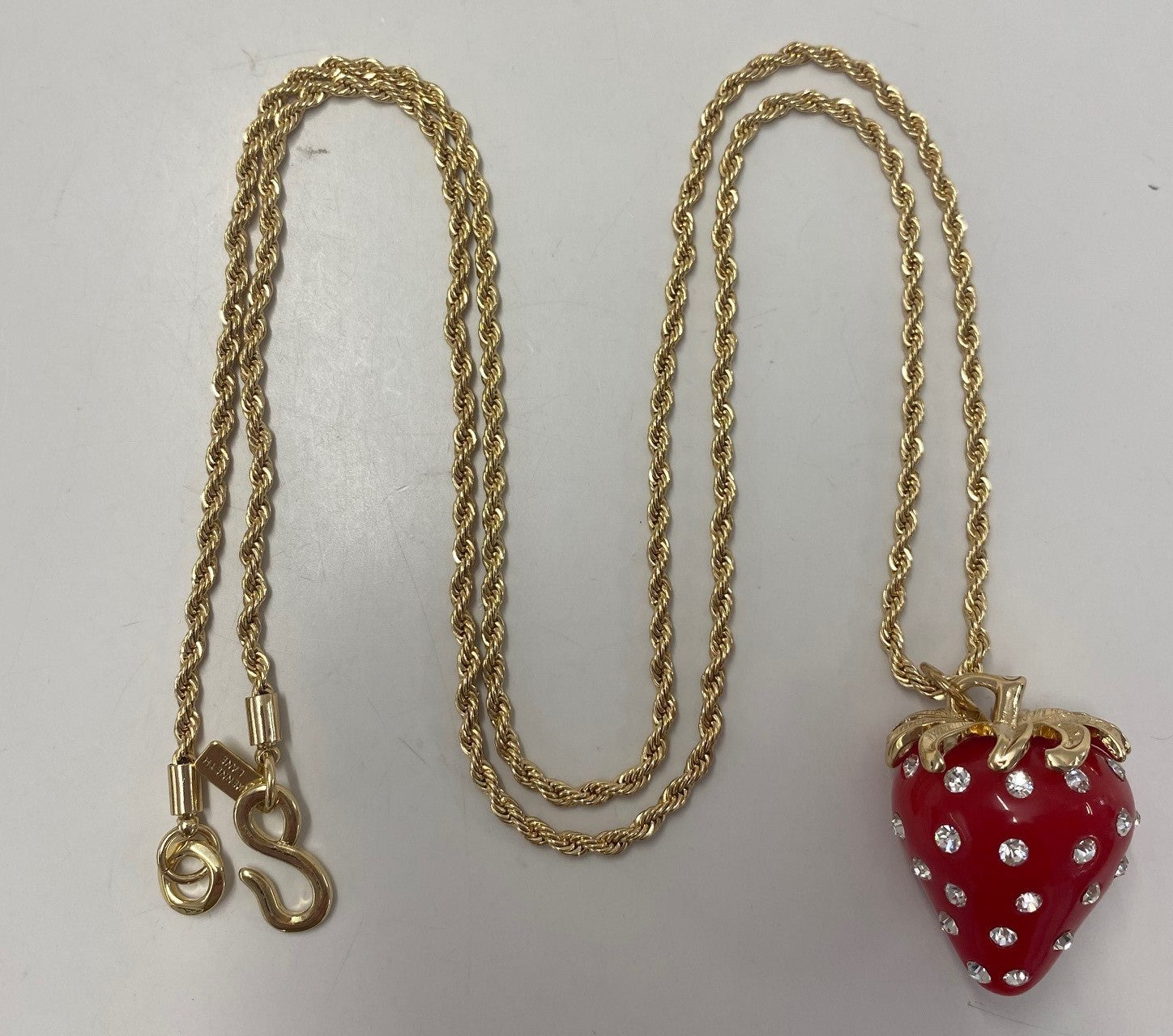 34" Gold Chain Red and Crystal Dots Strawberry Pendant Necklace