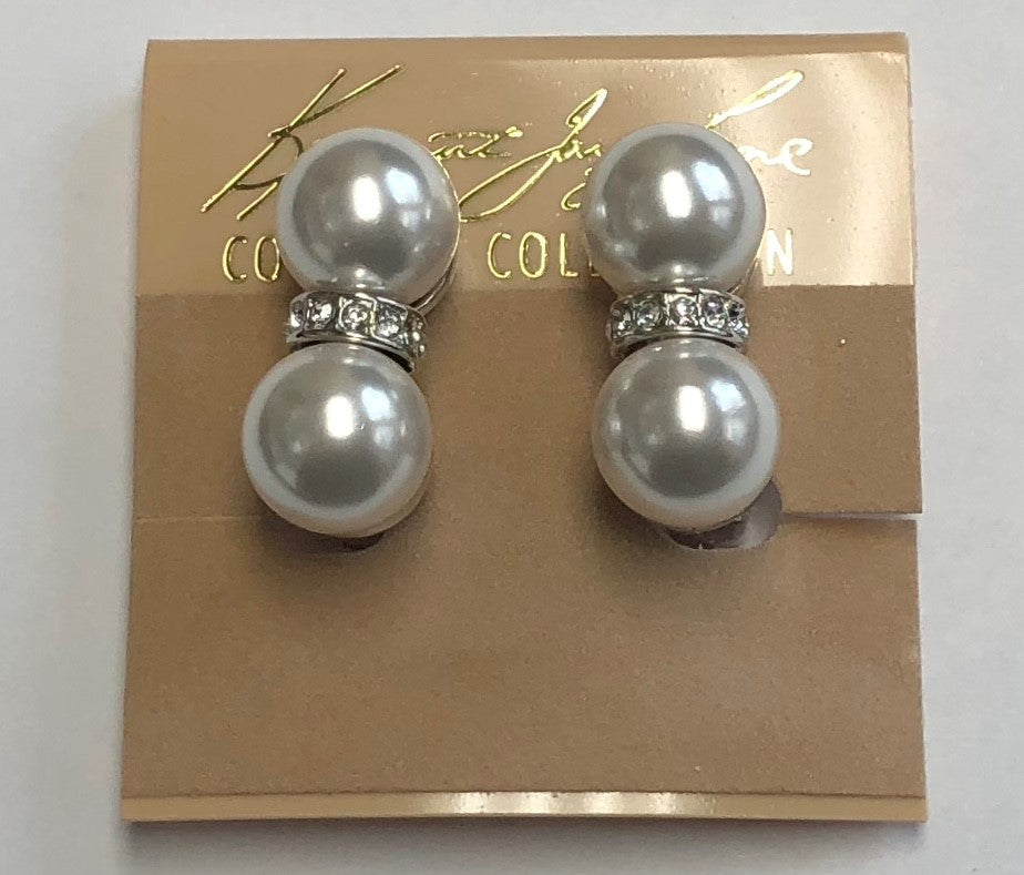 Rhodium Crystal Divider Double White Pearl Clip Earring