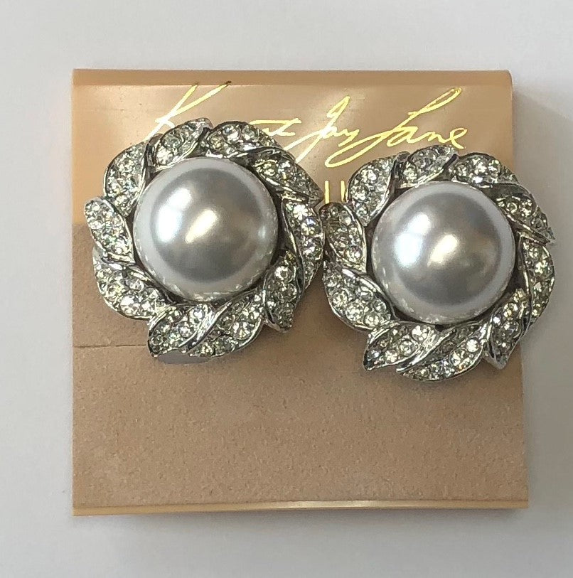 Rhodium-plated with crystals setting 16mm pearl center flower clip earrings