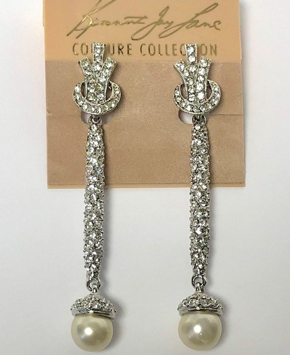 Rhodium-plated with crystals long top and pearl bottom pierced earring