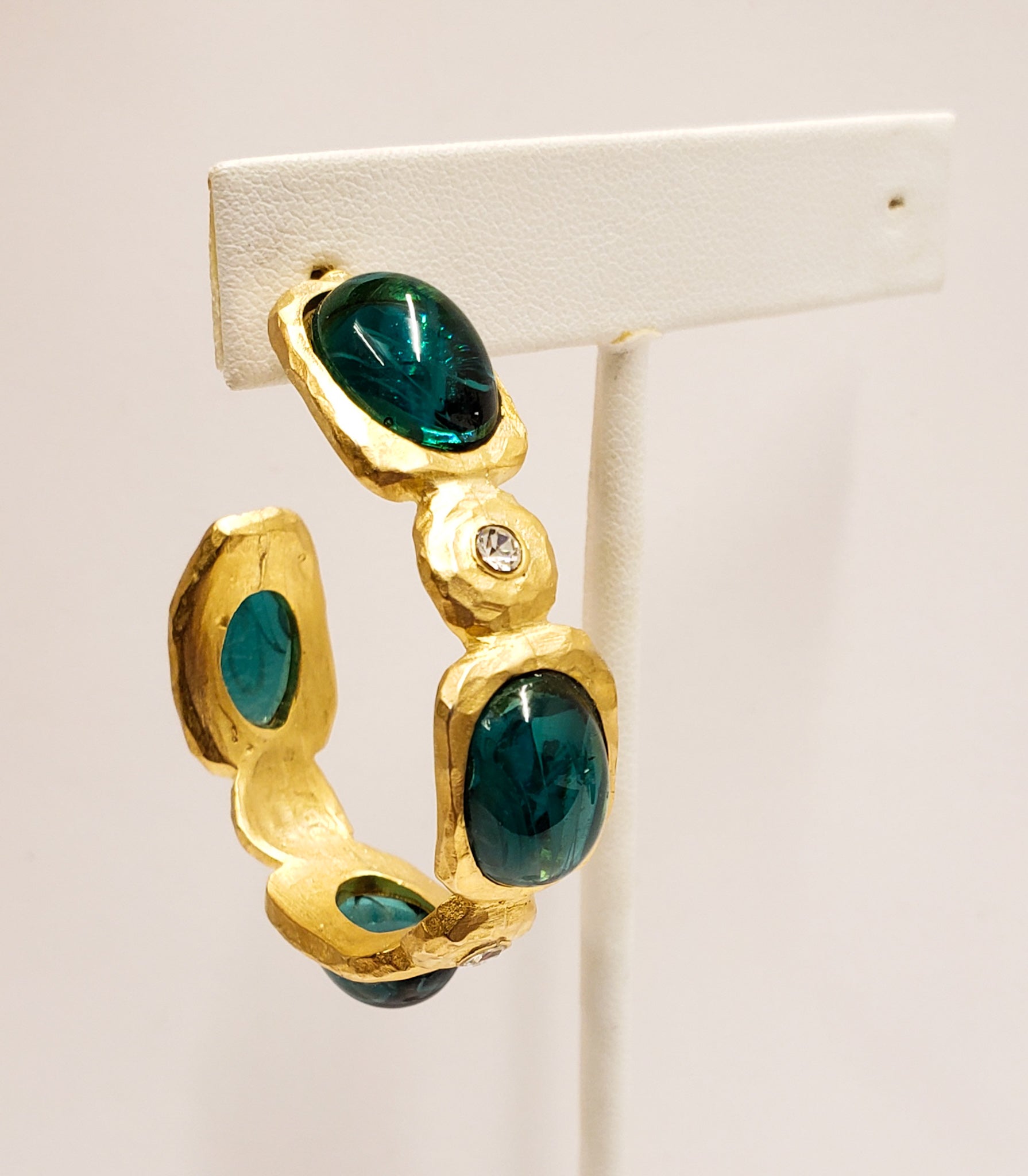 satin gold/crystal flaw emerald centers hoop pierced ear