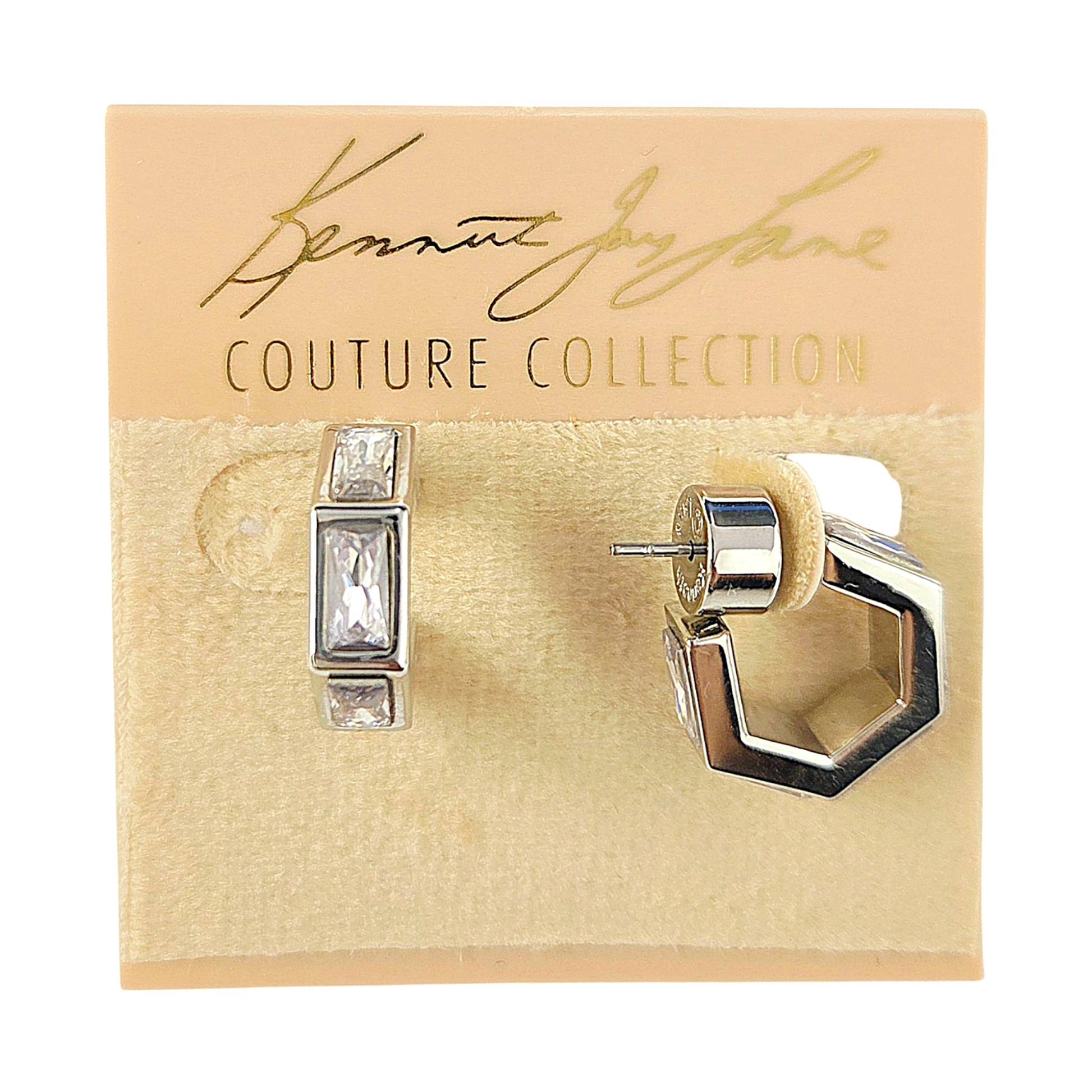 1/2" silver/ crystal 5 sided hoop pierced ear