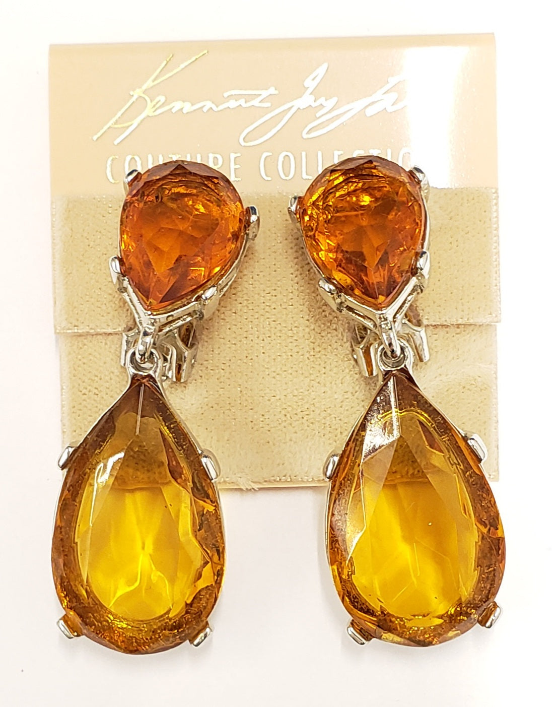 2" silver/ topaz teardrop glass stone top & drop clip earring