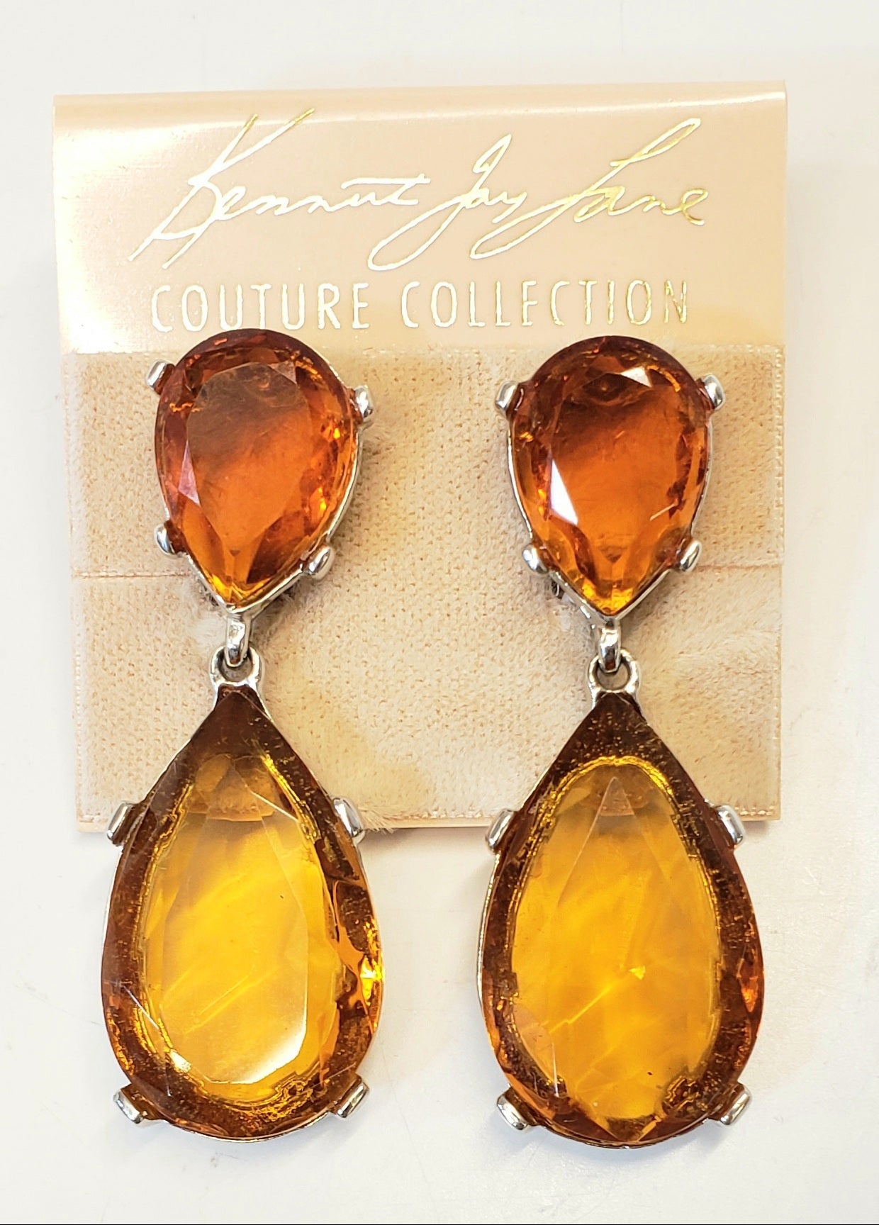 2" silver/topaz teardrop glass stone top & drop pierced earring