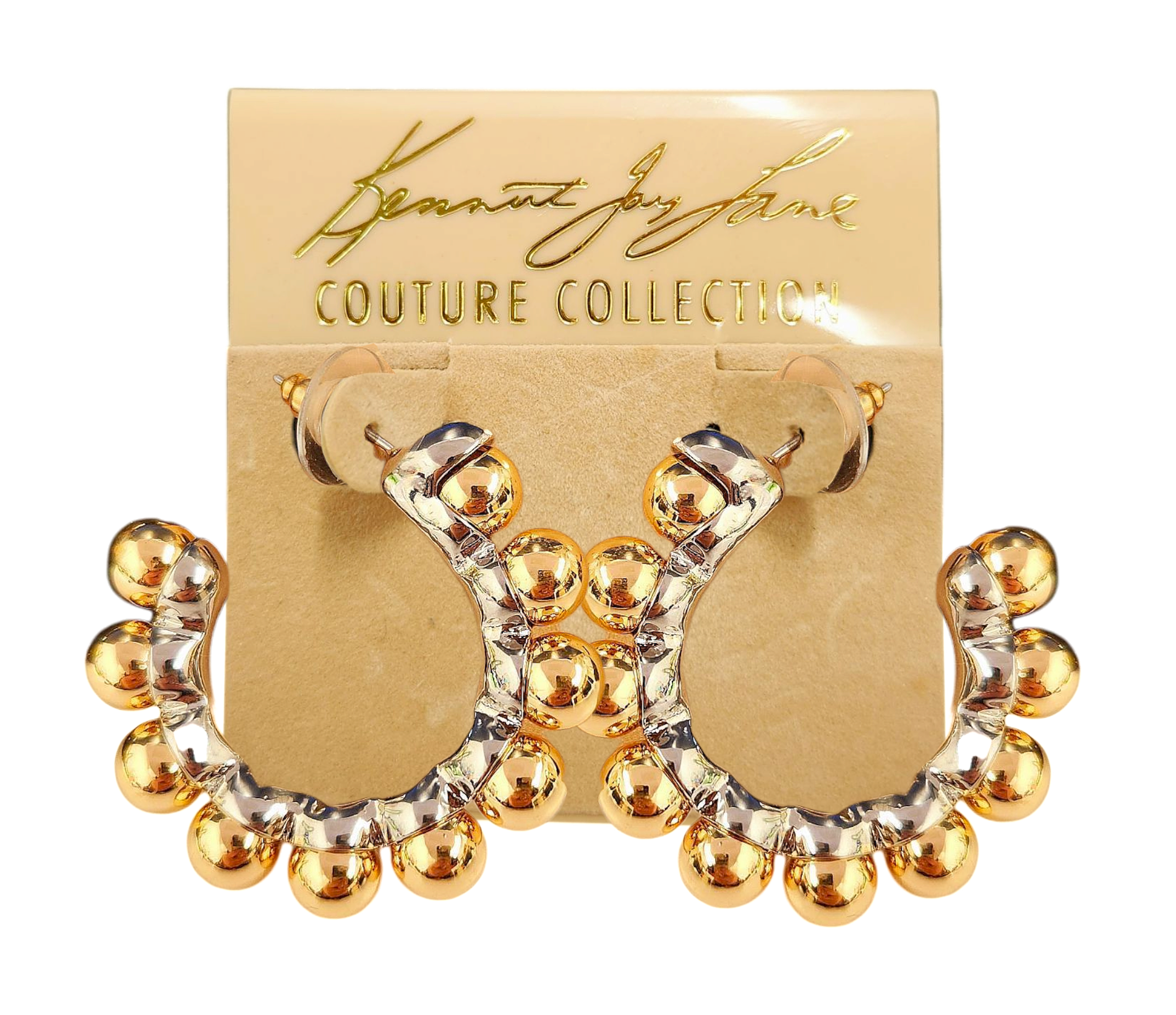 1 1/4" two-tone silver with gold (7mm) balls hoop pierced earring