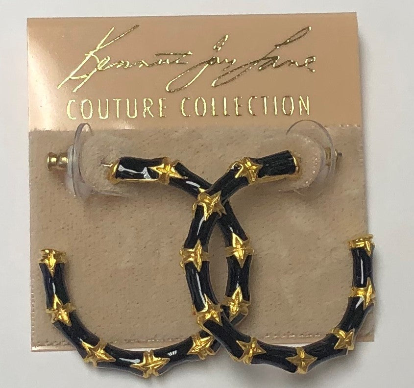 Black Enamel Small Bamboo Hoop Pierced Earring