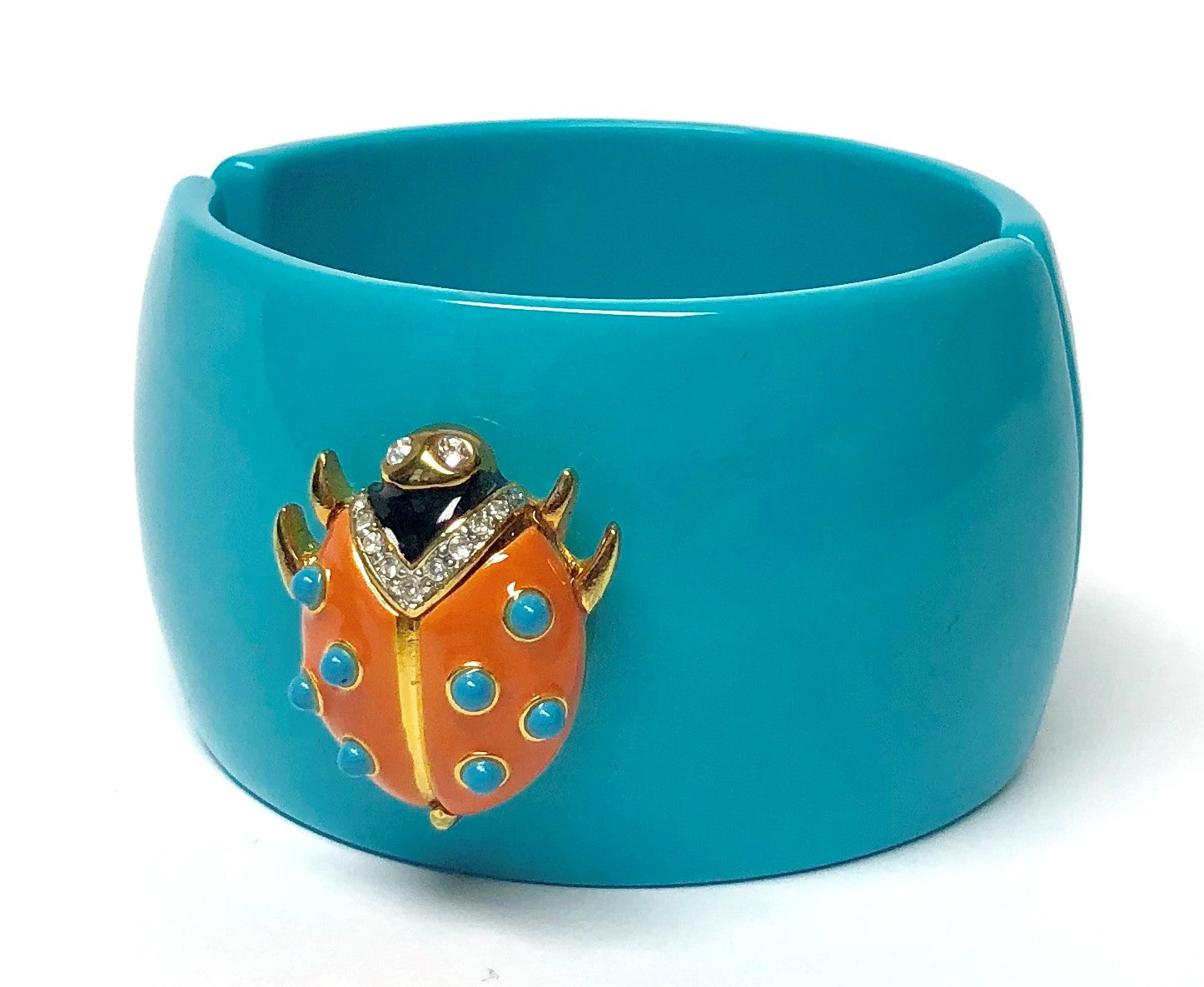Turquoise Gold -Black-Coral Enamel-Turquoise Dots-Crystals Ladybug Bracelet