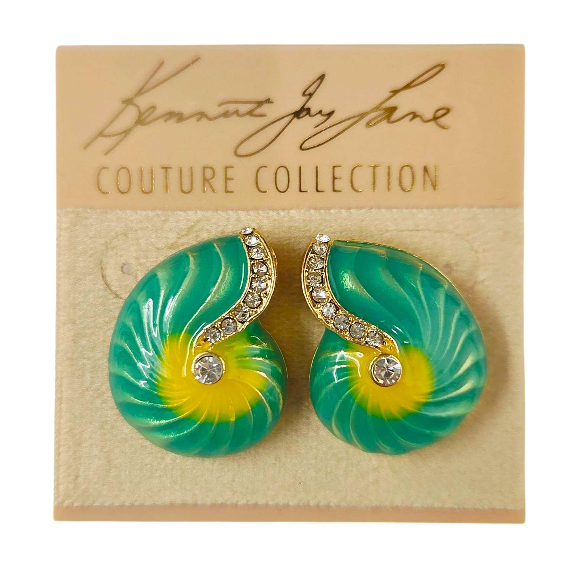 gold/rhine w/turquoise/yellow enamel shell pierced earring
