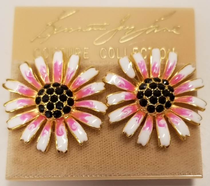 gold/ white/ pink enamel jet stones center daisy clip ear