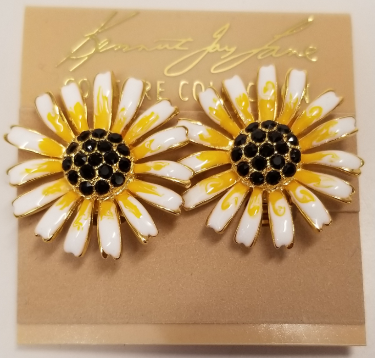 gold/ white/ yellow enamel jet stones center daisy clip ear